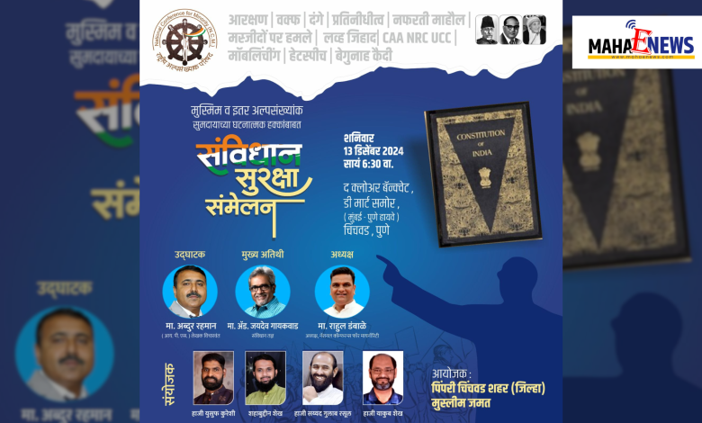 Pimpri Chinchwad : In order to raise awareness about the constitutional rights of Muslim and other minority communities, a Constitution Protection Conference is being organized today by the Pimpri Chinchwad City District Muslim Community. The event will take place in Chinchwad.