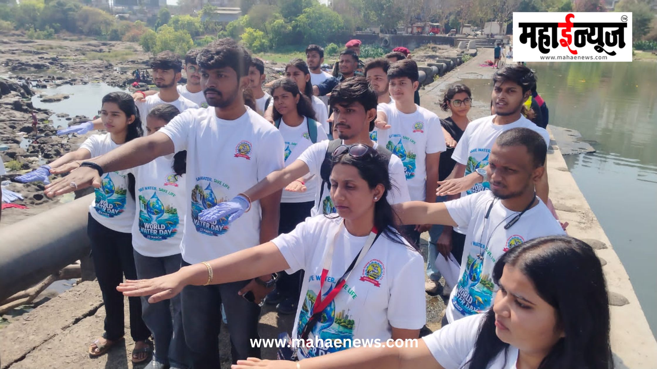पिंपरी-चिंचवड : जागतिक जल दिनानिमित्त पिंपरी चिंचवड महानगरपालिकेच्या पर्यावरण अभियांत्रिकी विभाग व पाणीपुरवठा विभाग यांच्या संयुक्त विद्यमाने तसेच डॉ. डी. वाय. पाटील इन्स्टिट्यूट, पिंपरी यांच्या सहकार्याने रावेत बंधारा येथील पवना नदी काठावर विविध उपक्रमांचे आयोजन करण्यात आले.