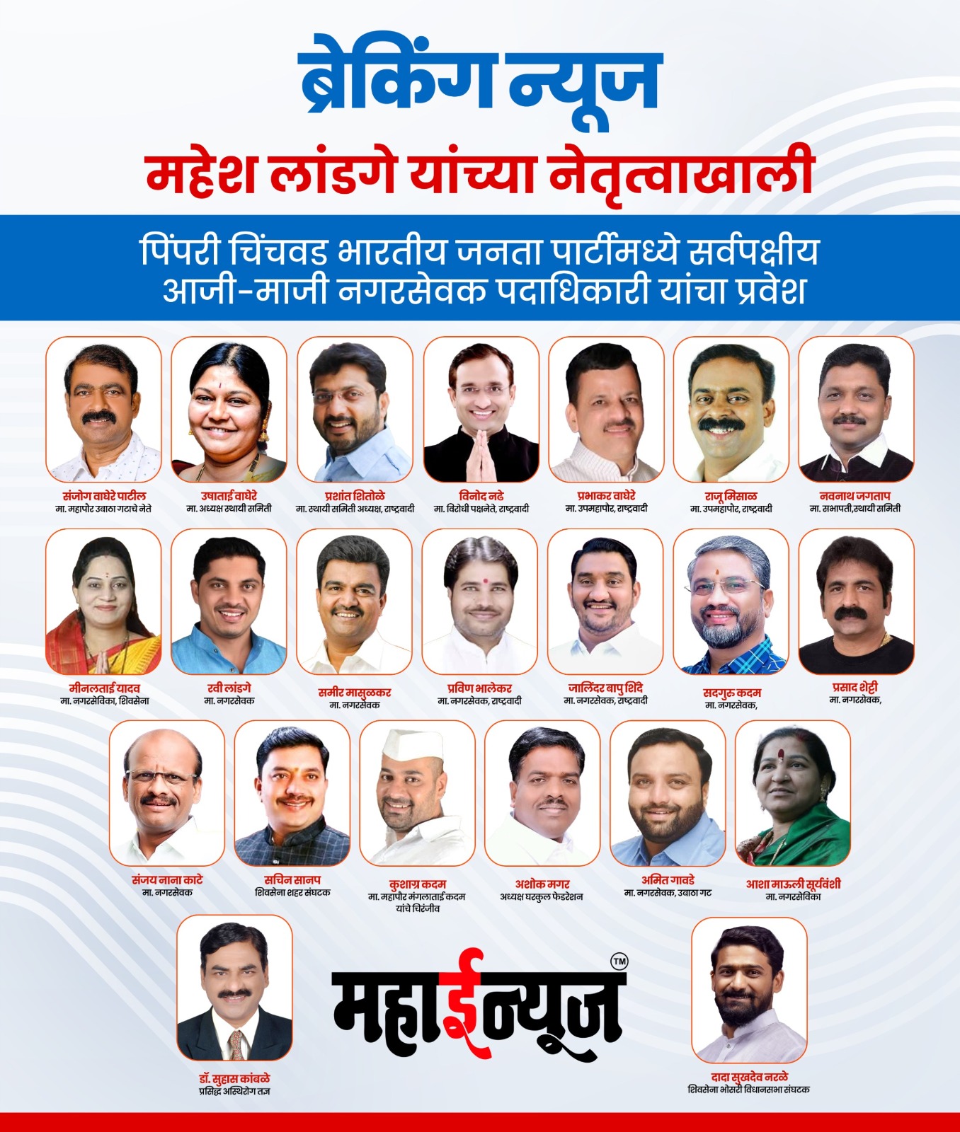 पिंपरी-चिंचवड महानगरपालिका निवडणुकीच्या निमित्ताने भाजपातील काही माजी नगरसेवक आणि पदाधिकाऱ्यांचा उपमुख्यमंत्री अजित पवार यांनी पुण्यात बारामती गेस्टहाउसमध्ये प्रवेश करुन घेतला. याला जोरदार प्रत्युत्तर देत भारतीय जनता पार्टीचे आमदार महेश लांडगे आज सर्वपक्षीय 22 दिग्गजांचा भाजपात प्रवेश करण्यात आला.